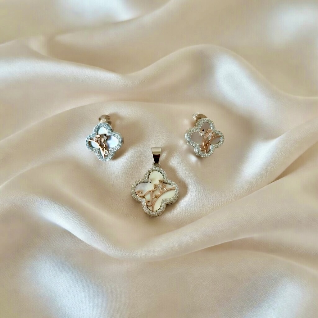 Floral Charm Pendant & Earring Set