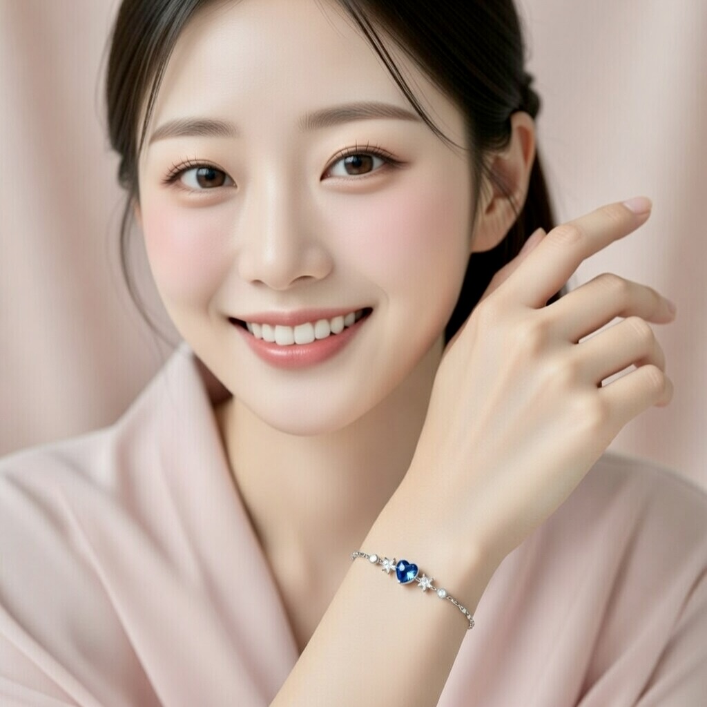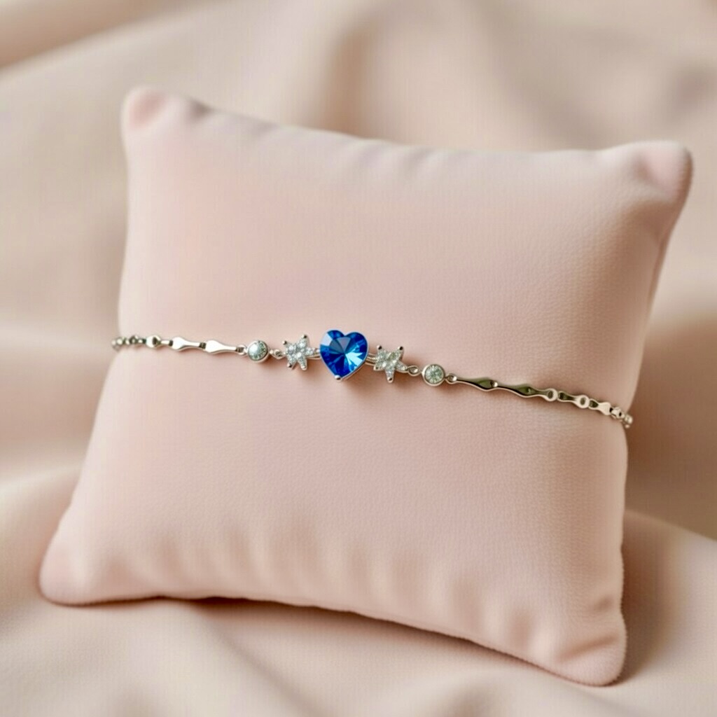 Heart and Star Crystal Bracelet with Blue Gem Accent