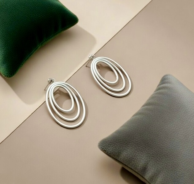 Sleek and minimalist, these silver oval hoop earrings feature a layered design that adds depth and movement to your style. The lightweight, openwork structure creates an airy and contemporary look, perfect for both casual wear and evening occasions. These hoops offer a refined touch to any outfit, making them a versatile addition to your jewelry collection.