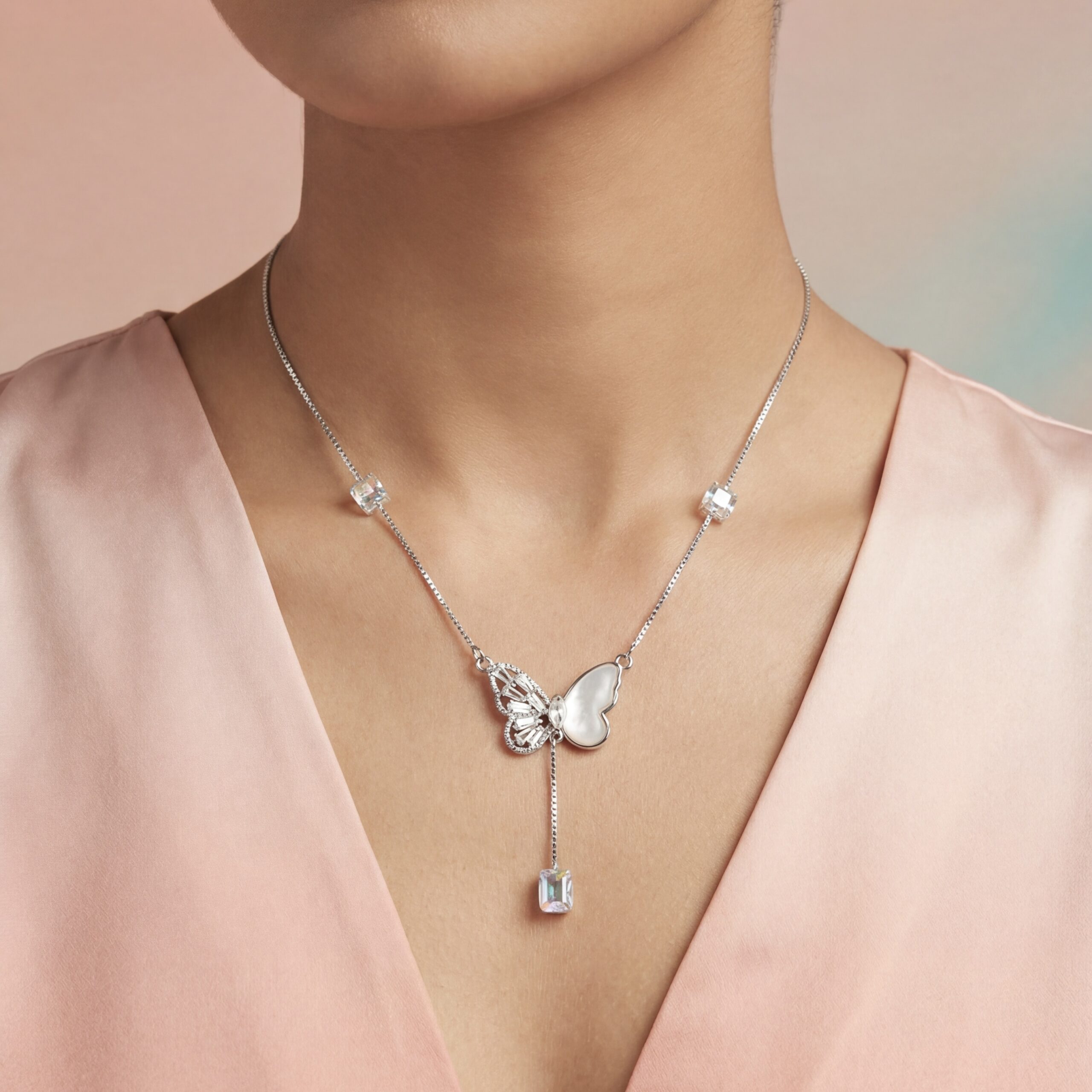 This enchanting butterfly pendant opens at the center, revealing a hidden compartment inside. Crafted in fine silver, its delicate wings add a whimsical touch, making it a perfect blend of beauty and mystery. A stunning piece for anyone seeking elegance with a touch of surprise.