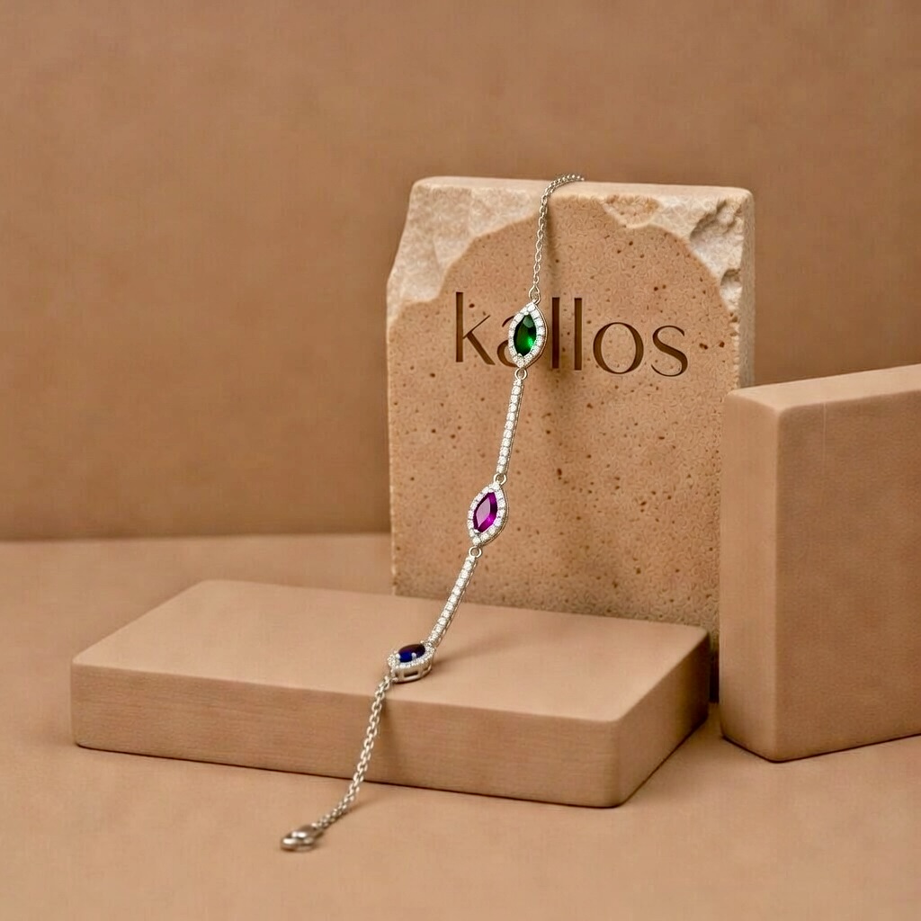 Elevate your style with our Vibrant Gemstone Silver Bracelet. This stunning piece showcases beautifully framed gemstones that add a pop of color and sophistication to your wrist. Perfect for any occasion, it effortlessly combines elegance and charm. Wear it solo or stack it with other favorites for a personalized touch!